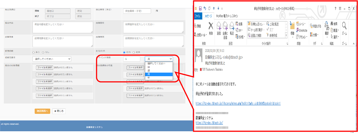 - 保全予約登録時に保全予定日の指定した日程にリマインドメール配信を可能にしました。
