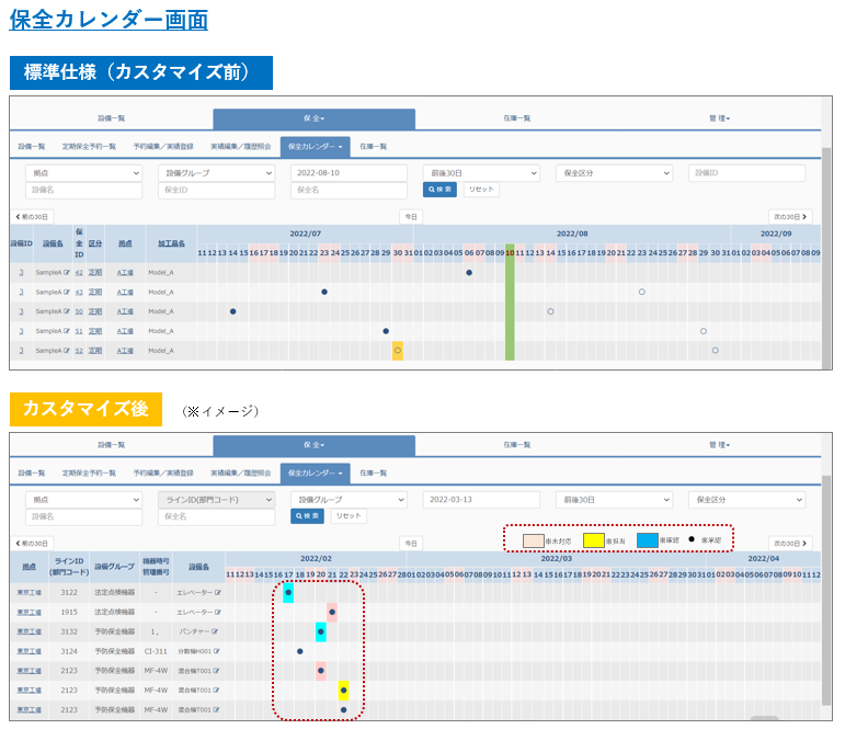 - ISO取得済み帳票にあわせた保全項目及びExcel帳票出力機能の追加等