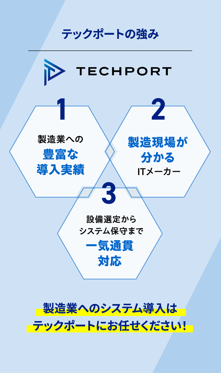 テックポートは、創業当時から自動車製造業を中心に様々な工場訪問の経験を重ねシステム開発、システム導入支援を行ってきました。